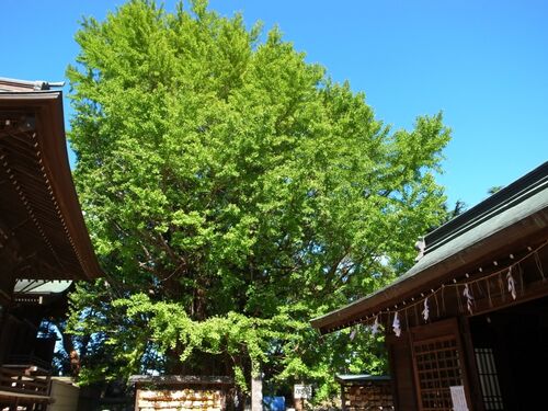 今日は午後からぶらりと散歩へ。出がけに地元・八幡神社に寄ってみたり。 「江戸名所図会」にも載っている名物・千本イチョウは黄色くなる寸前。この黄緑色の状態も青空に映えてきれいでした。 しかし振り返れば、参道脇のだだっ広い土地が剥き出しに。実は…