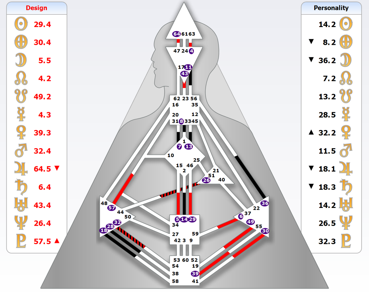 リフレクターは、9つのセンターが真っ白で、チャネルも1本もつながっていないため、ぱっと見ると全員、無個性に見えますし、つかみどころが無いように感じるでしょう。しかし花山さんの見解によると、だからこそプロファイルや、インカネーションクロス、パーソナリティの太陽が際立っていると。
