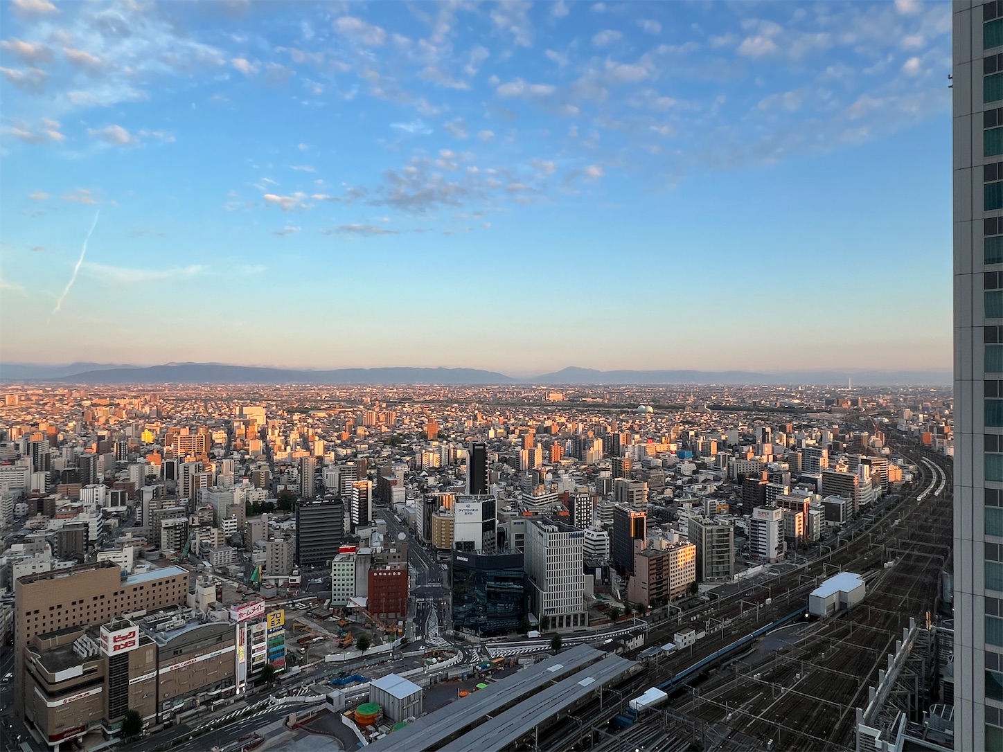 名古屋の朝焼けを眺めつつ朝風呂です(おじさんの入浴情報)。