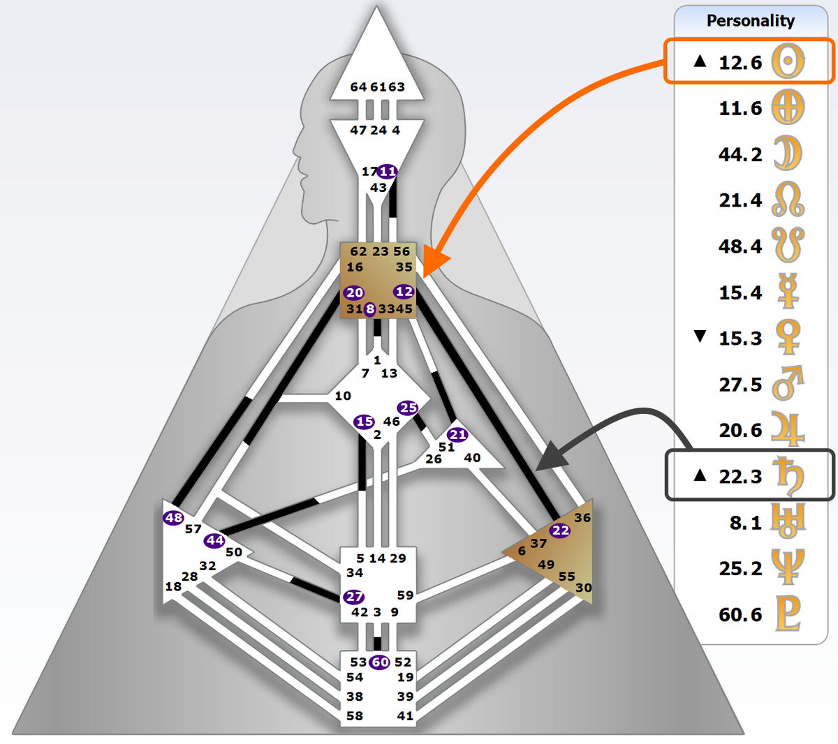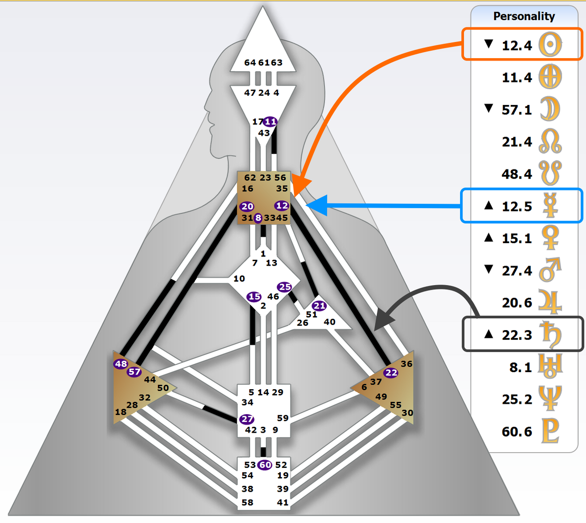 そして今日の午前中は、12.3と22.3▲という3番ライン同士のスムーズな繋がりでしたが、11:07から太陽が12.4▼に移り、不調和な繋がりに変化し、しかも水星も12番ゲートに入った影響で▼(デトリメント)に偏っていたため、なるほど、これかと。僕自身は、12番も22番ゲートもデザインに持っていないため、この力をまるまる受け取って、気分が下がったんだなと。午後から予定していたのは、気分が下がった時にやるとマズそうな案件だったので、それは避け、感情を排して作業できるレポート作成をもう1本進めてみました。